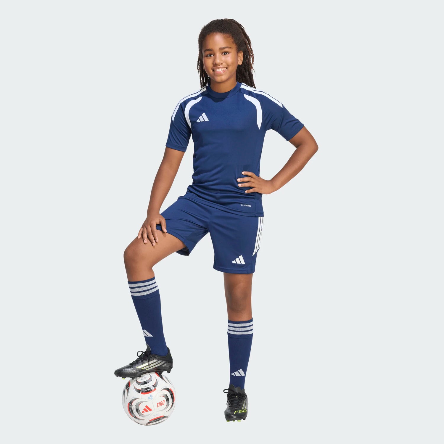 Inspired by elite designs, the Tiro26 League Shorts bring a modern look to every young player, so they feel like champions on match day. The encased silhouette wraps around the body, offering a sleek and fast appearance that matches their energy. Cool. Dry. Ready. Climacool wicks and disperses sweat for a cool, dry and distraction free performance. A fully elasticized waistband and drawstring provide a secure fit, allowing unrestricted movement for every kick and sprint. The classic embroidered adidas logo and laid-on 3-Stripes add a touch of heritage to the design, making this piece a stylish choice for young athletes. Whether they're playing at school or in a league, these shorts are designed to keep up with their active lifestyle.