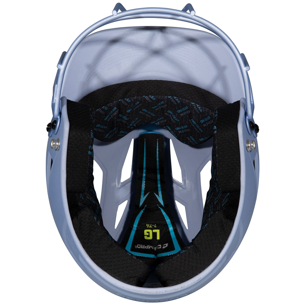 Champro Senior HX Rise Matte Batting Helmet with Facemask - LIGHT BLUE is backordered and will ship as soon as it is back in stock.