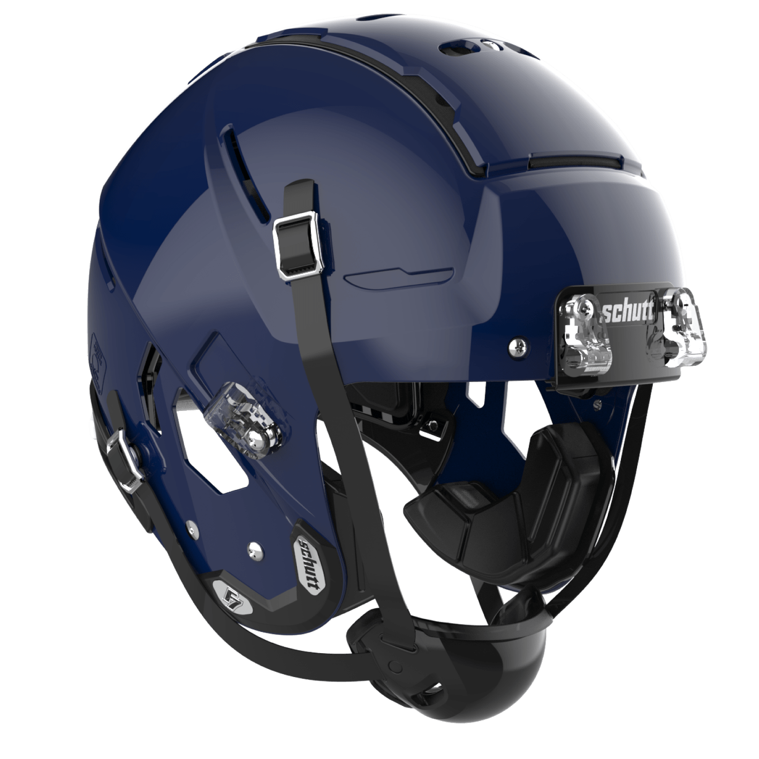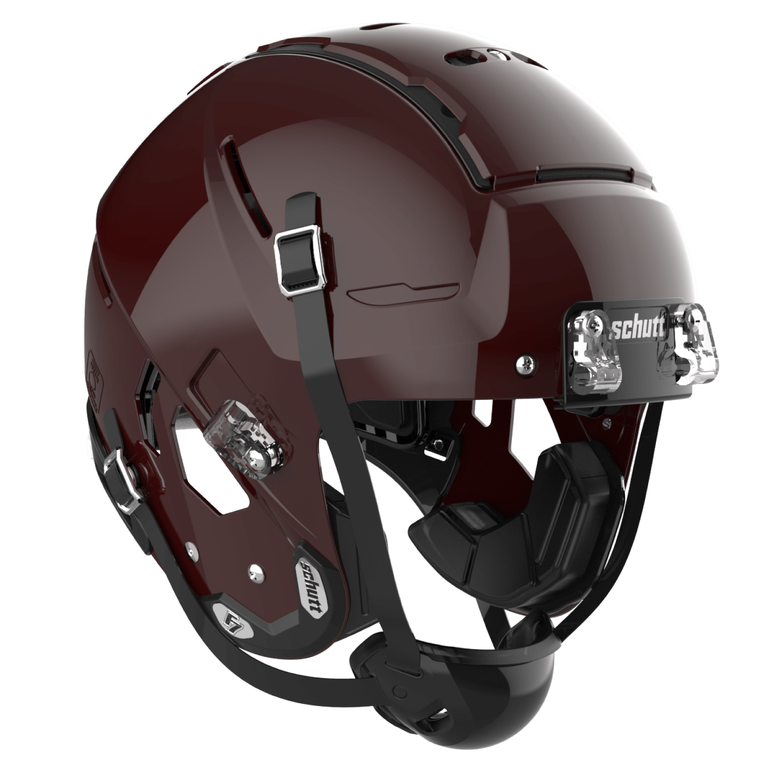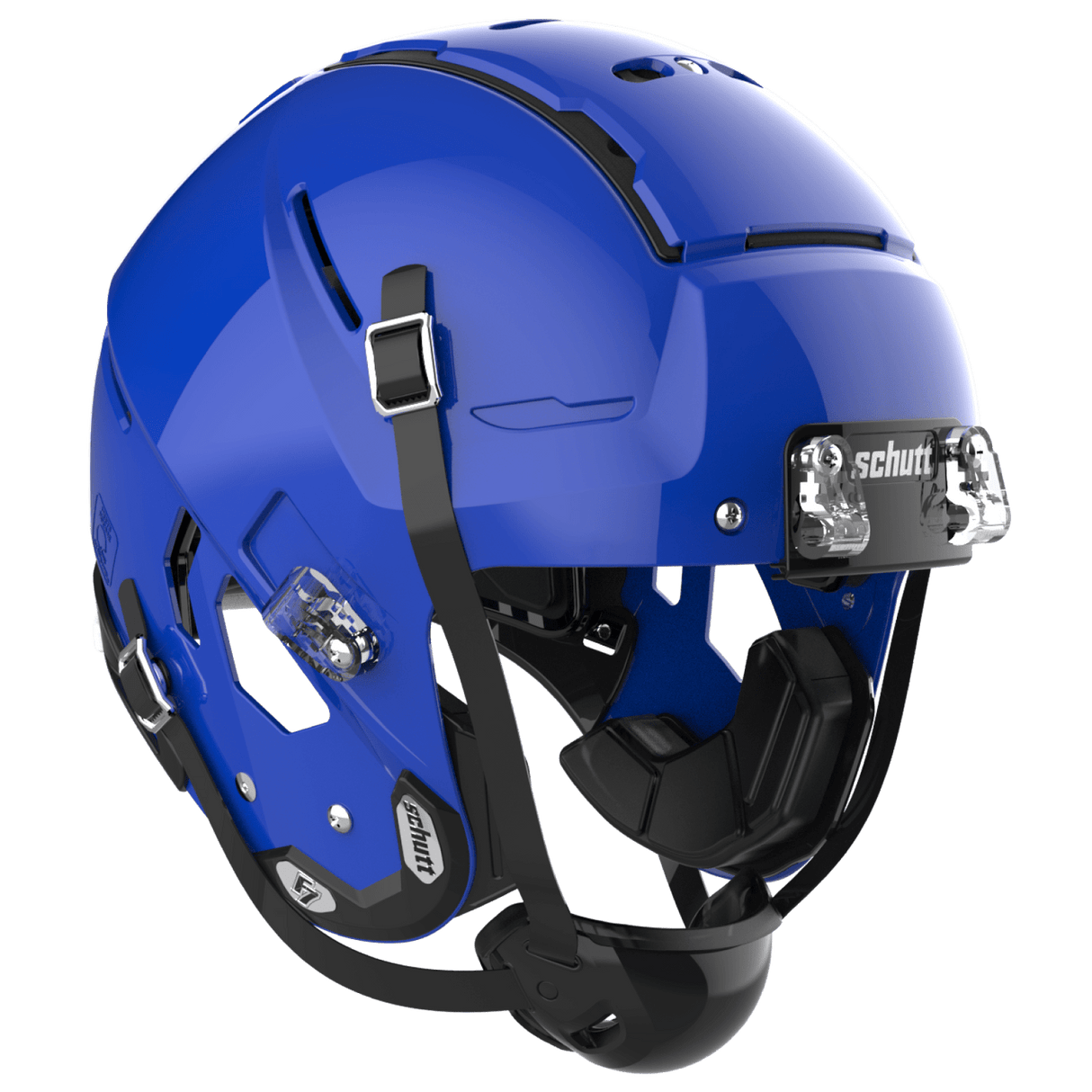 The Varsity Schutt F7 helmet is part of Schutt Sports family of football helmets. This helmet features the new Tectonic Plate 3DM system to help improve the management of rotational energy and impact absorption. The moveable plates, along with five other layers of protection, create the ultimate energy management system. The Schutt F7 has the TPU Surefit AiR liner, allowing air to move more freely creating a more secure and customized fit. The F7 face guards offered features a tapered design for increased range of motion and decreased impact area, promoting more of a glancing blow on frontal impacts.