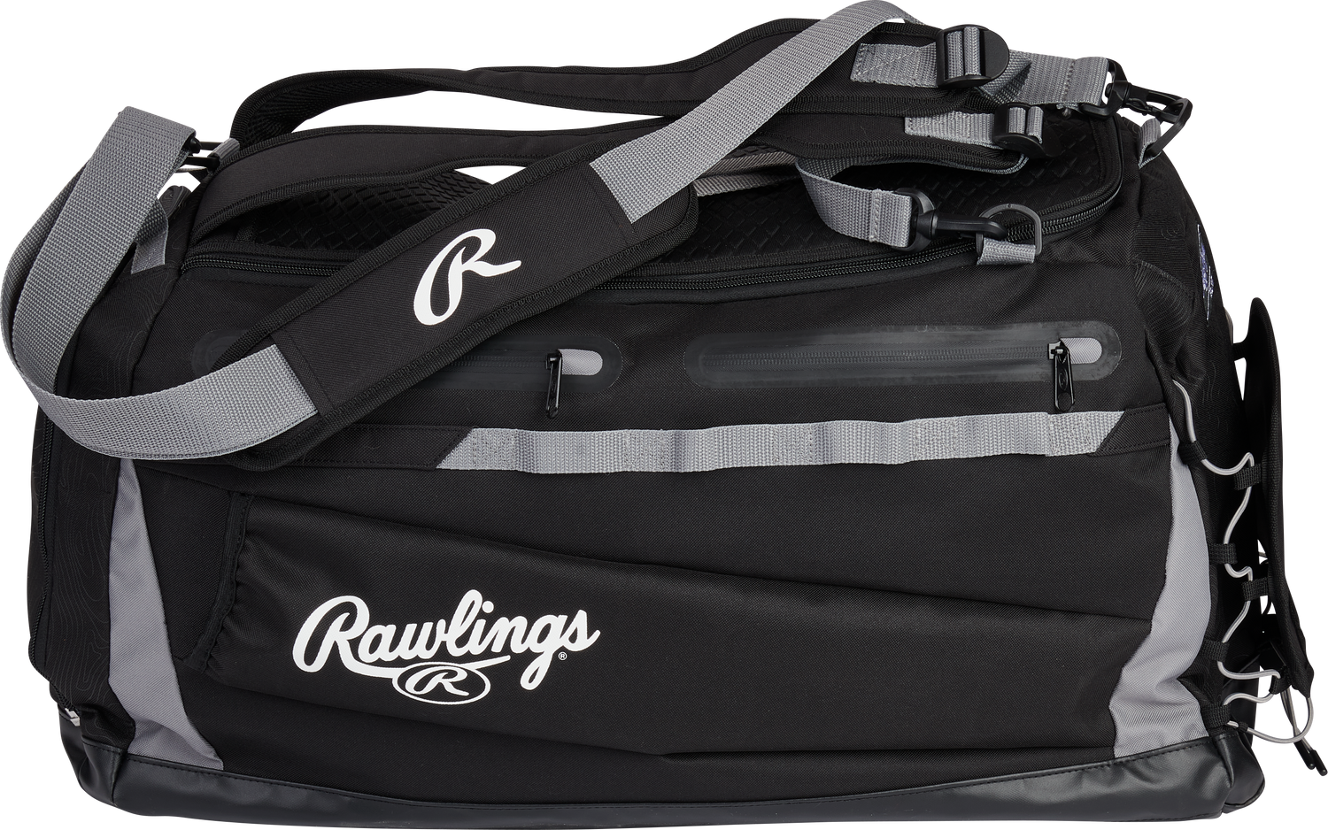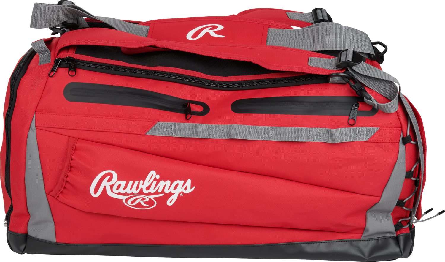 Travel to and from the field easier than ever with the Rawlings MACH duffle bag/backpack! This versatile bag comes with tons of storage and organization features to make sure you spend more time on the diamond and less time searching through gear in the dugout. On the exterior, this bag features two bat storage sleeves and cleat/shoe storage with easy access. In addition, the spacious interior is capable of storing a full catcher's set, or anything else you need to get ready to play. Plus, with two fleece-lined side pockets, you can store your valuables and know they'll be safe and sound. To top it off, the MACH Duffle Bag/Backpack comes with a special Mark of a Pro glove storage location to keep your gamer pristine. This bag is also extra durable and easy to maintain thanks to the PVC bottom material and rugged external material. Whether you're using this as a backpack to carry to-and-from the field or you're hanging it on the dugout fence for easy access during games, the Rawlings MACH duffle bag/backpack won't let you down. Get yours now!