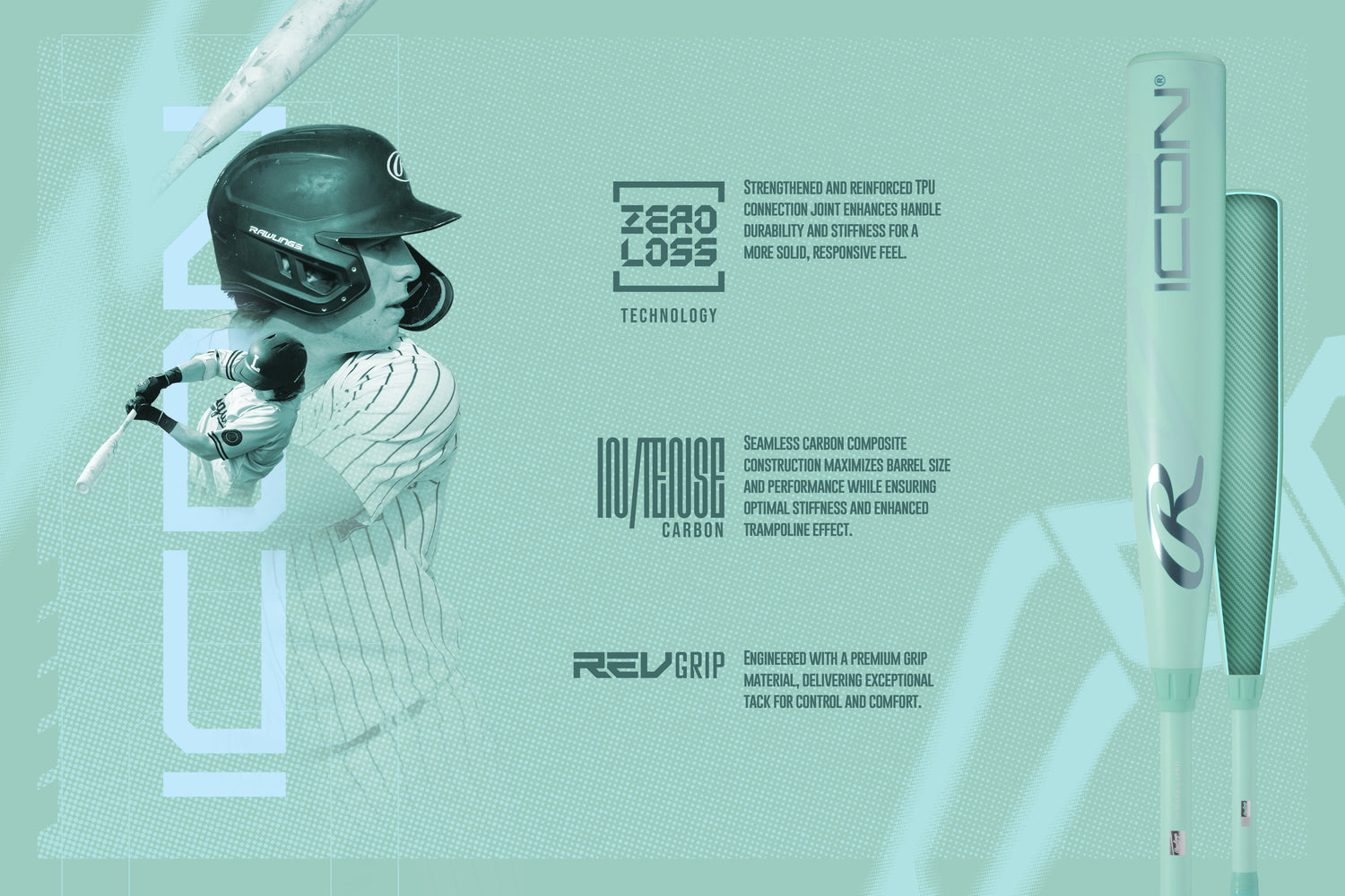 Bring modern energy to the plate with the 2026 Rawlings Icon -11 USSSA Junior Big Barrel Bat, now available in a sleek mint colorway that matches its clean, lightweight performance. This one-piece composite bat is built with In/Tense Carbon Composite, a seamless barrel design that creates serious trampoline effect and explosive energy transfer. The tuned swing weight makes it easy for young hitters to control the bat through the zone and generate elite-level bat speed. Topped off with the premium Rev Grip for advanced comfort and tack, the Icon -11 delivers everything young players need to dominate USSSA play - with a colorway that sets them apart. Ships in 5-7 Business Days.