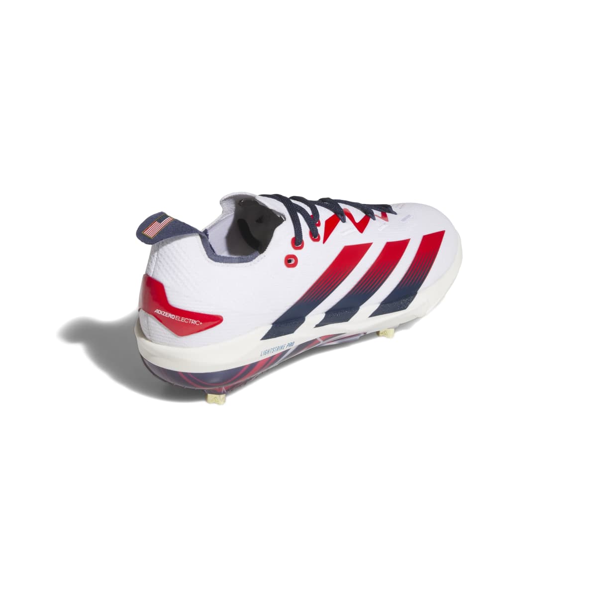 adidas Men's Adizero Electric+ 2.0 USA Baseball Cleats - CLOUD WHITE/TEAM NAVY BLUE/TEAM COLLEGIATE RED / 10.5 is backordered and will ship as soon as it is back in stock.