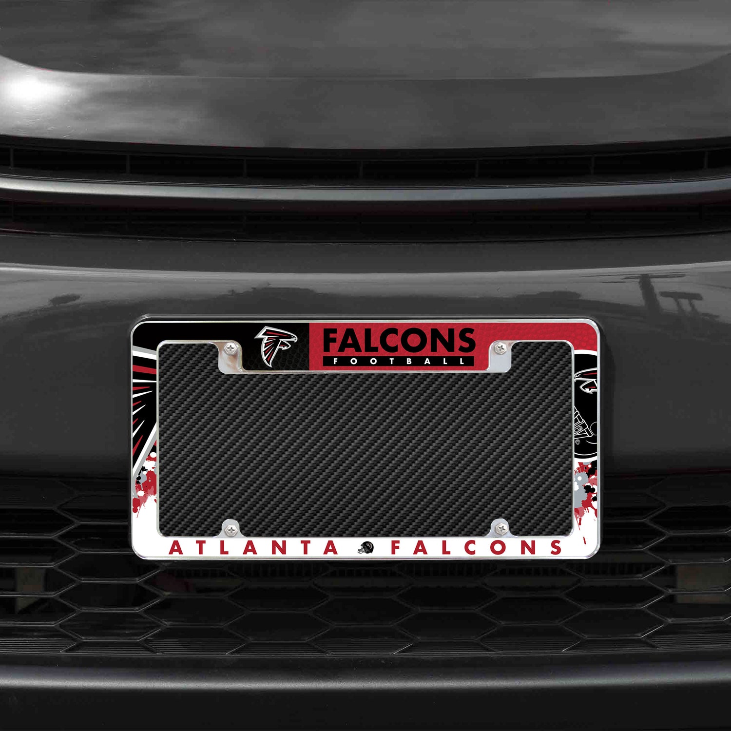 NFL Atlanta Falcons All Over Chrome License Plate Frame - Black is backordered and will ship as soon as it is back in stock.