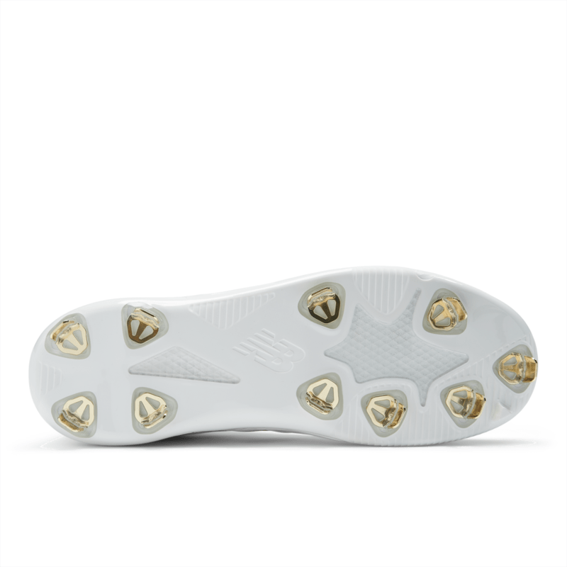 New Balance Men's FuelCell Ohtani 1 Baseball Cleat - MSHOWT1 (Wide) - White/Metallic Gold / 8 Wide is backordered and will ship as soon as it is back in stock.