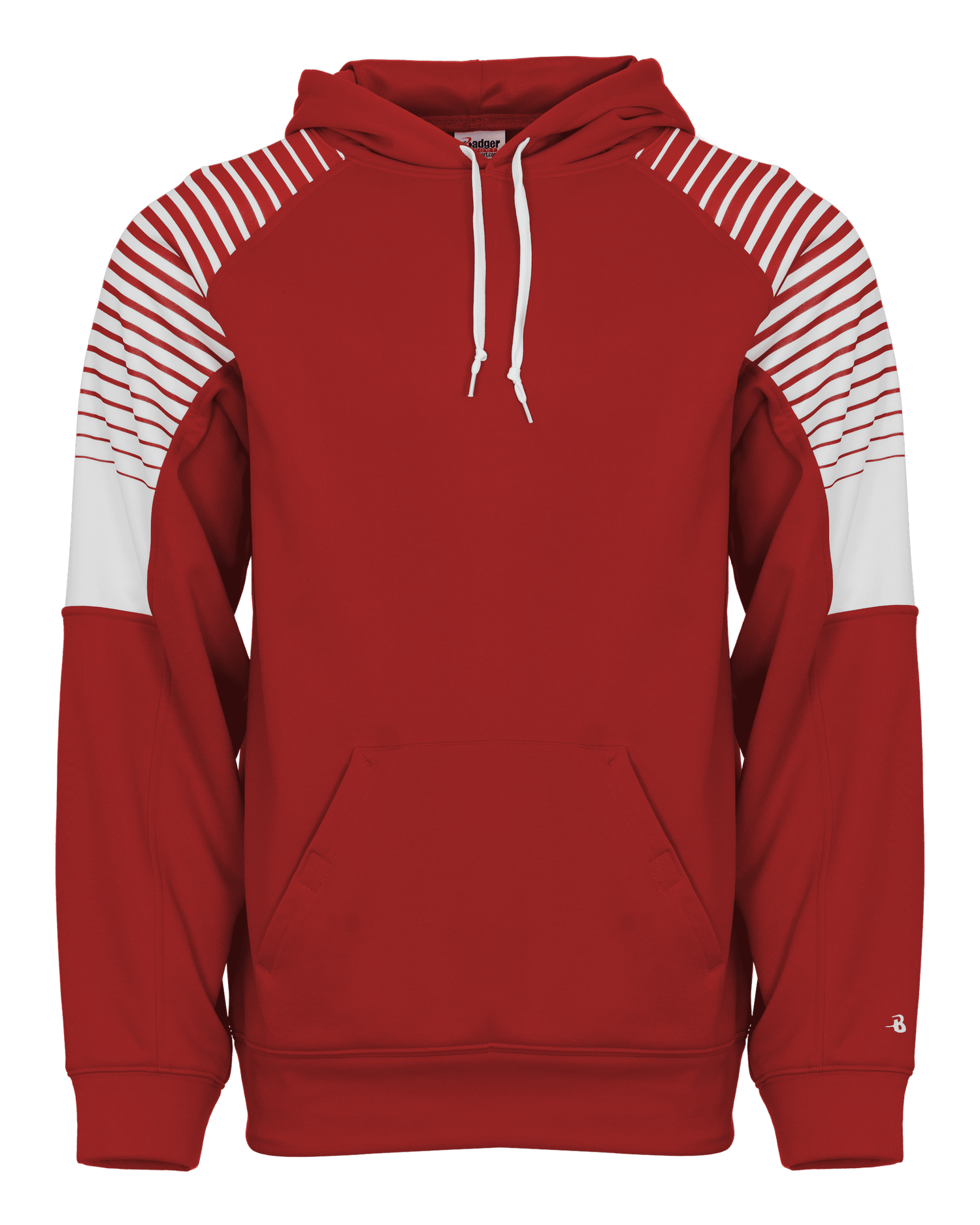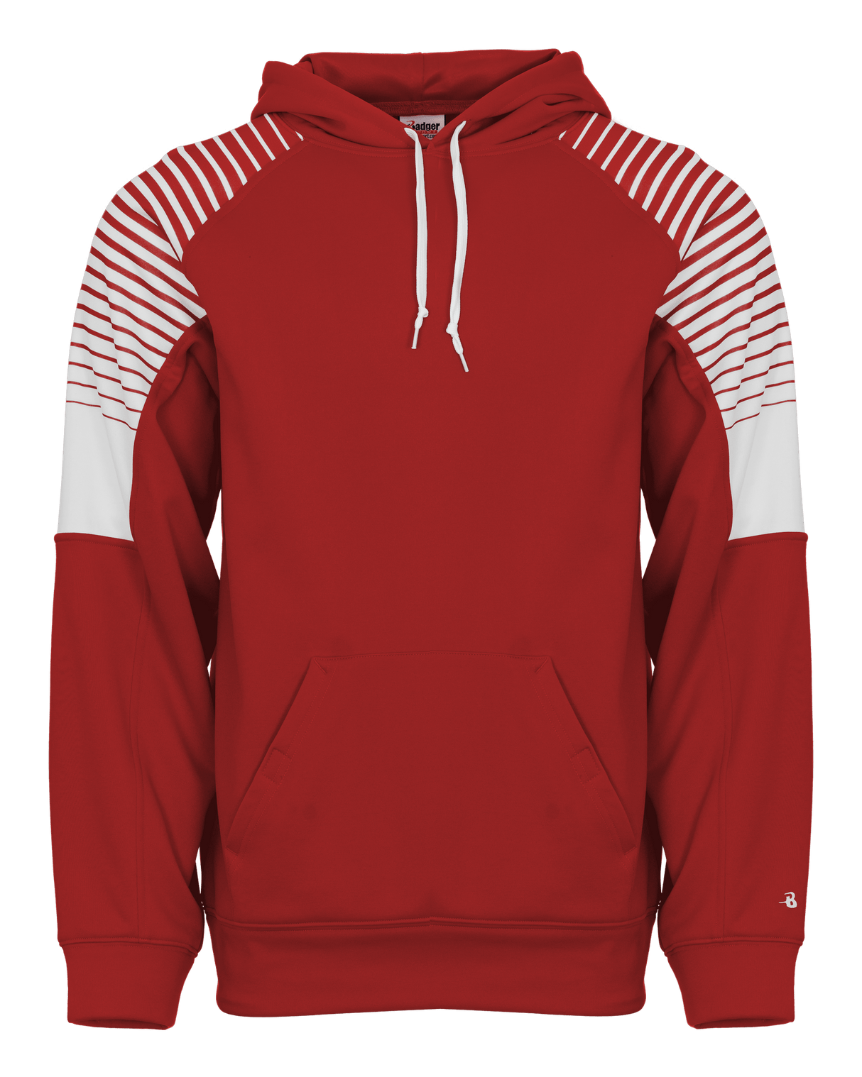 Stay warm and comfortable in style with the Badger Men's Lineup Fleece Hoodie. Made from 100% polyester moisture management fleece fabric, this hoodie features sublimated raglan sleeve panels for a unique look. The front pouch pocket includes two hook & loop closures and a headset opening for added convenience. Complete with self-fabric cuffs & waistband and an embroidered Badger logo on the left sleeve, this hoodie is the perfect addition to any wardrobe.