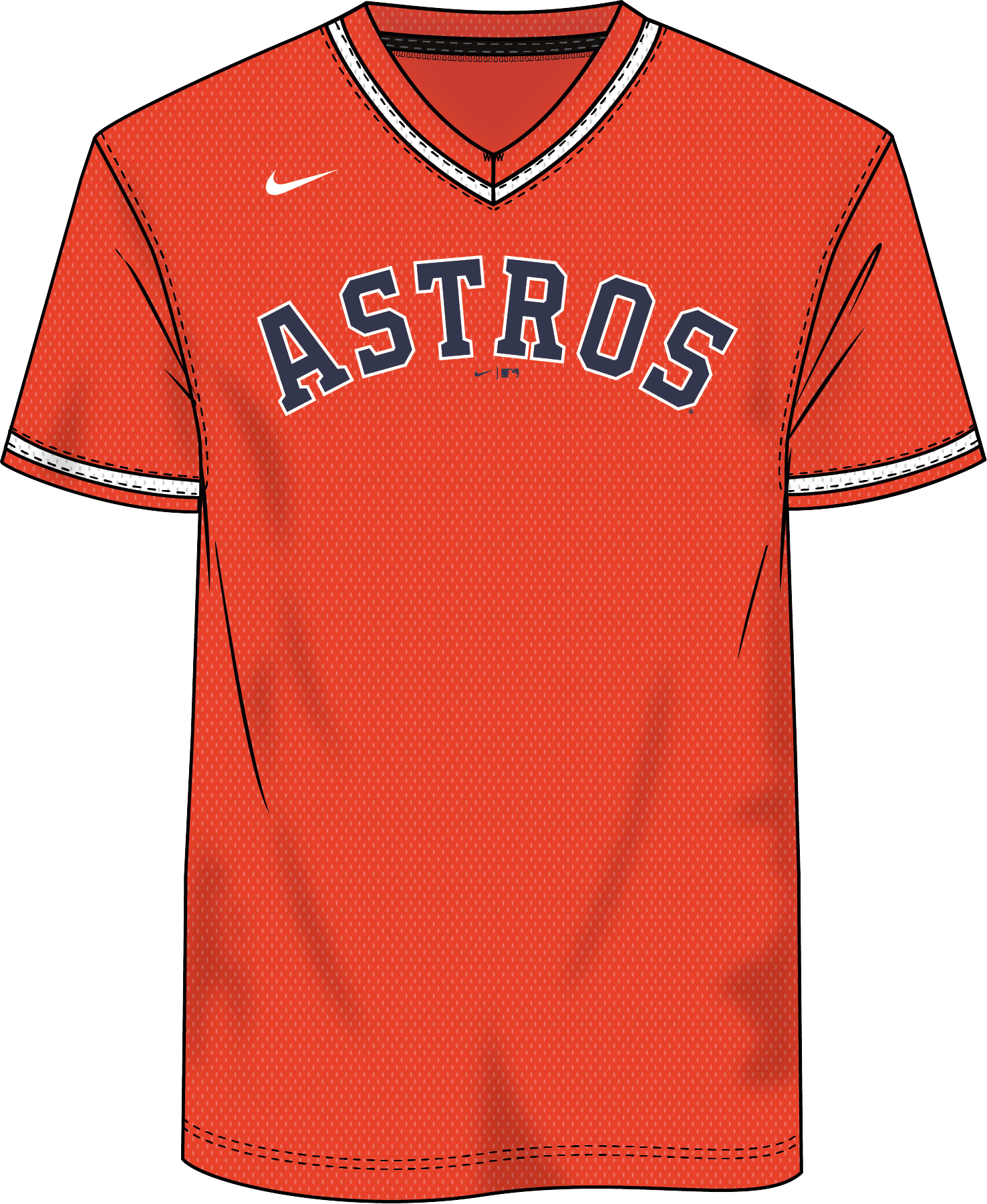 Nike Houston Astros Men's Institutional V-Neck Short Sleeve T-Shirt - Pro Orange / S / Ready to ship is backordered and will ship as soon as it is back in stock.