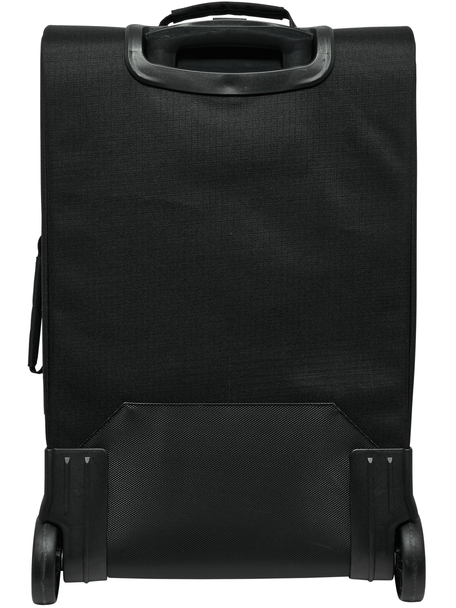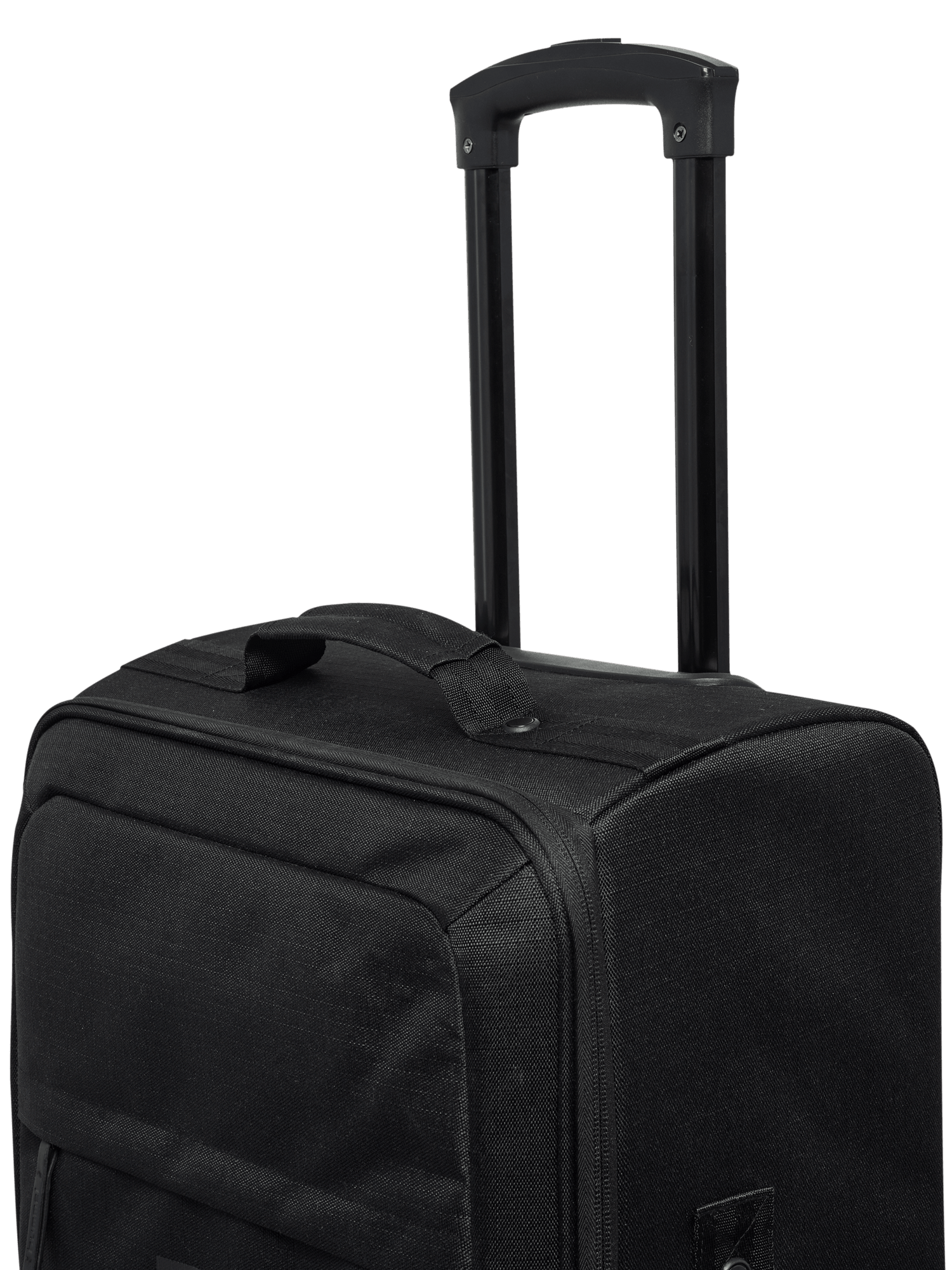The Travel Cabin Trolley is crafted from durable woven material. It features a two-wheel trolley with an extendable handle and a convenient front zip pocket for easy access.