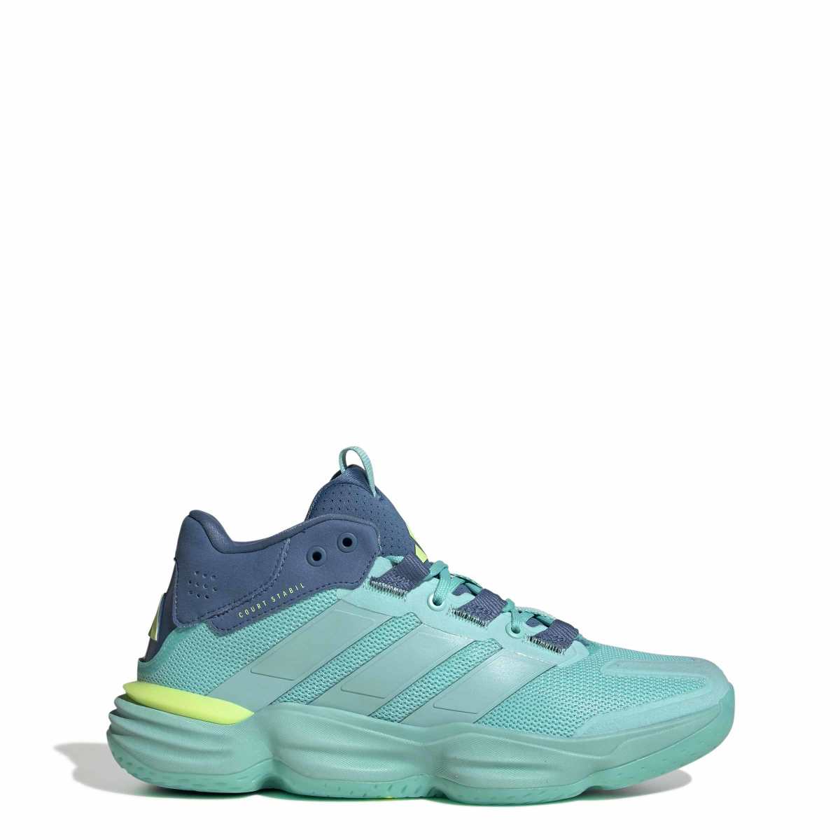 Command the court. Rolling with basketball-inspired style, these shoes are part of the trusted adidas Stabil family of power-focused indoor footwear. Their mid-cut mesh upper offers support and ventilation, while a REPETITOR midsole adds stability and comfort to every stride. A durable rubber outsole provides game-changing grip as you take control.