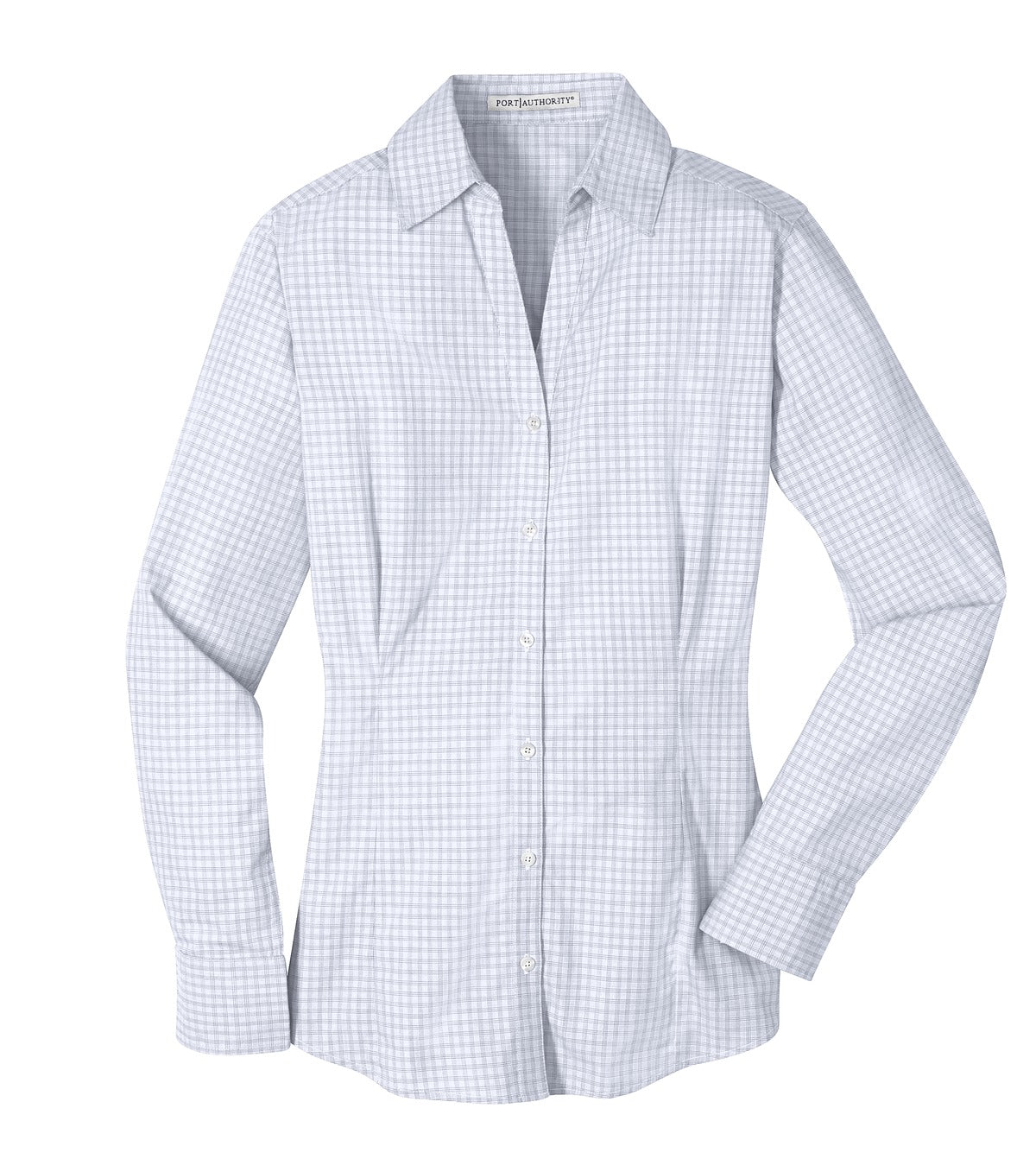 Port Authority Ladies Plaid Pattern Easy Care Shirt. L639 - White / S is backordered and will ship as soon as it is back in stock.