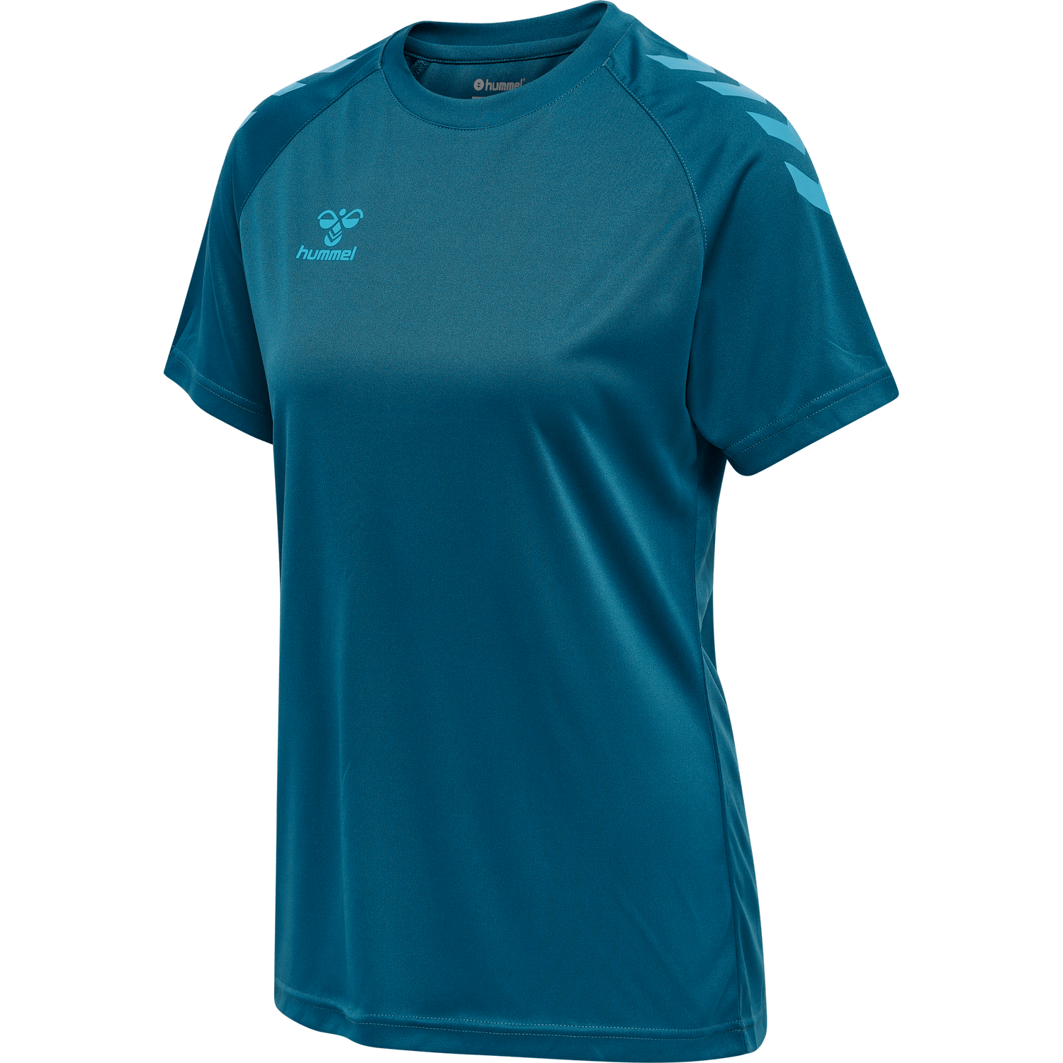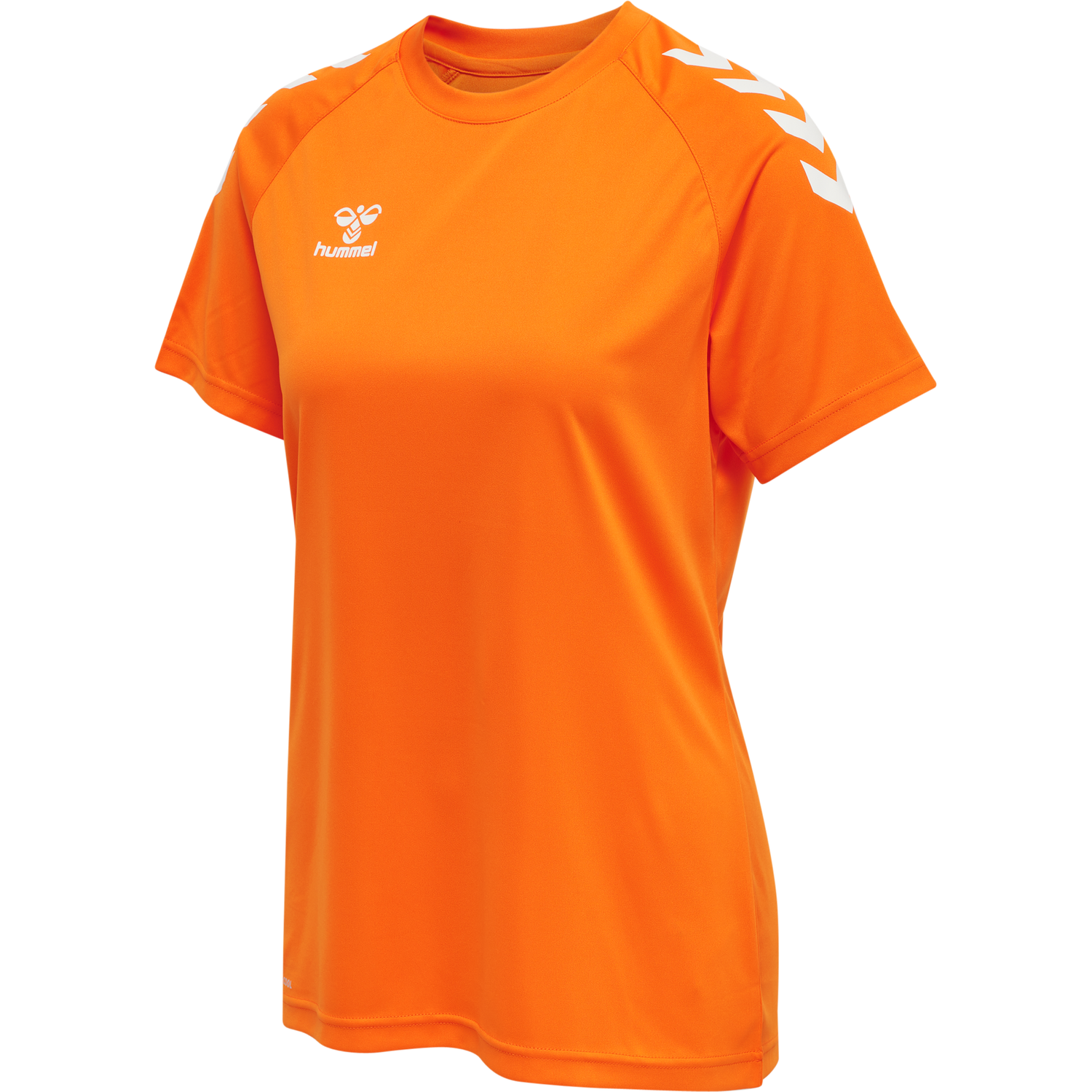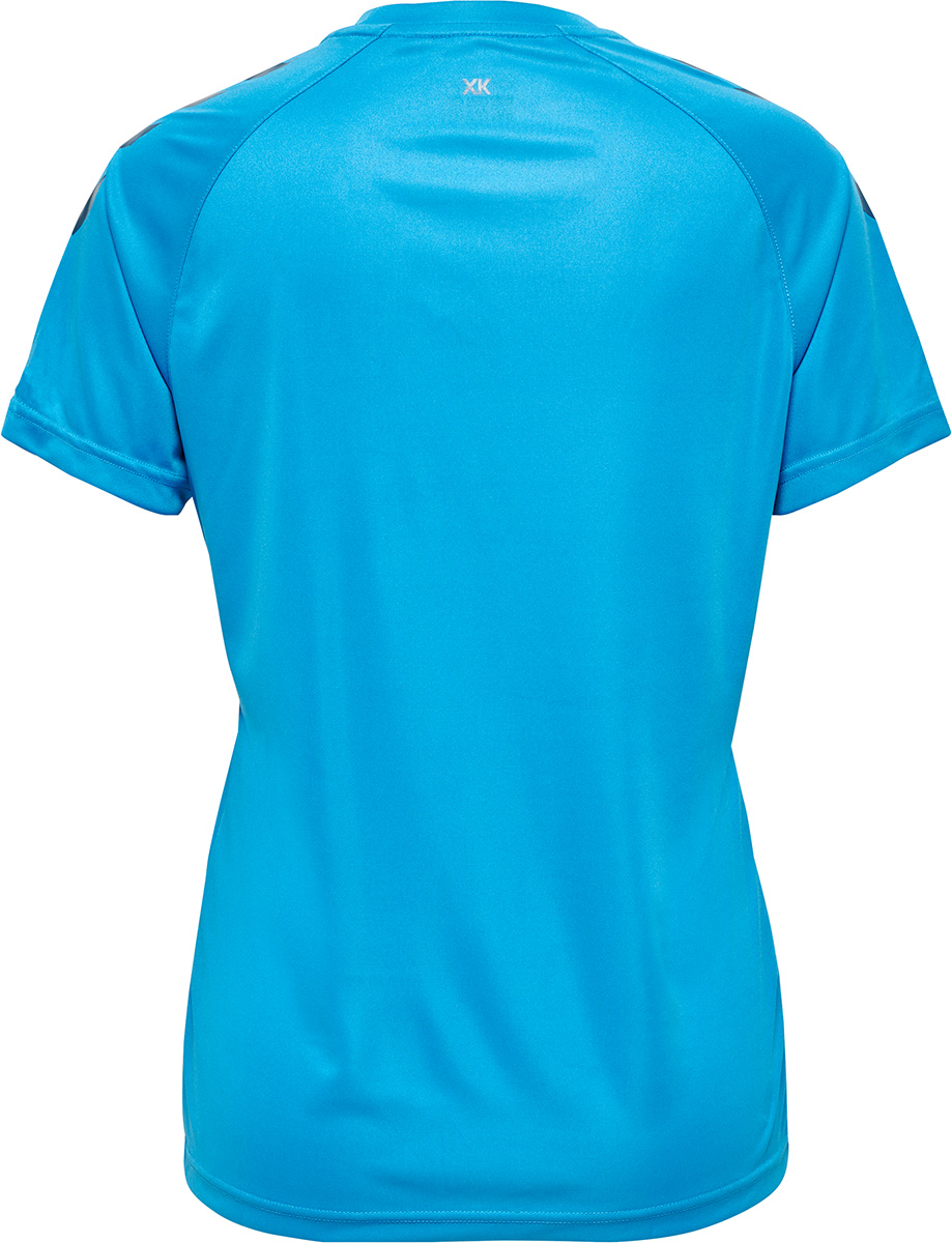 This hummel® short-sleeved T-shirt features BEECOOL® technology, meaning it keeps you cool as you train. The hmlCORE XK CORE POLY T-SHIRT S/S WOMAN is made from polyester interlock fabric, making it durable and comfortable. This T-shirt is not just practical; the printed chevrons and logo add a fun flair.
