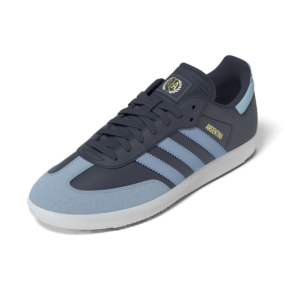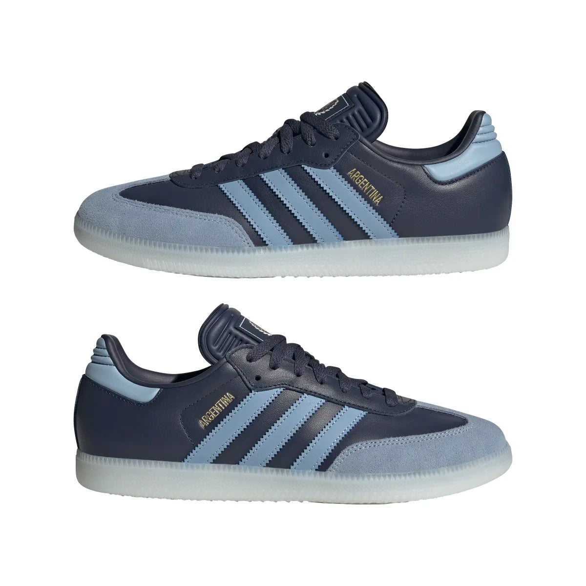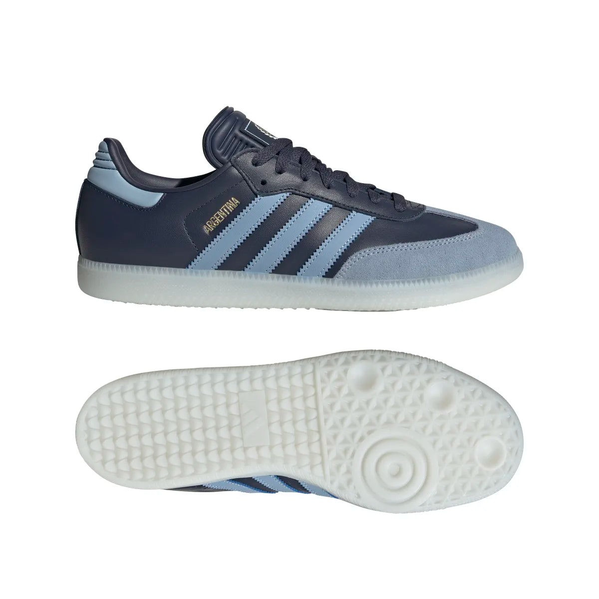 adidas Men's Samba Argentina Indoor Soccer Shoes - SHADOW NAVY/AMBIENT SKY/GOLD METALLIC / 4 is backordered and will ship as soon as it is back in stock.