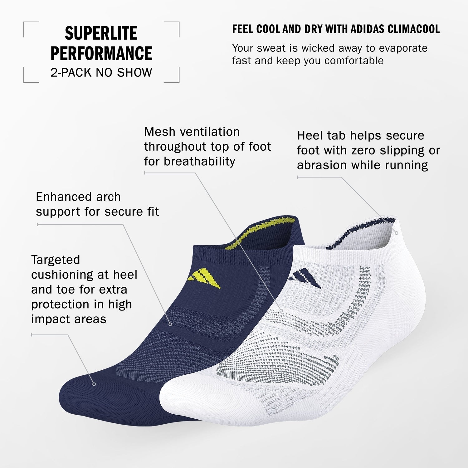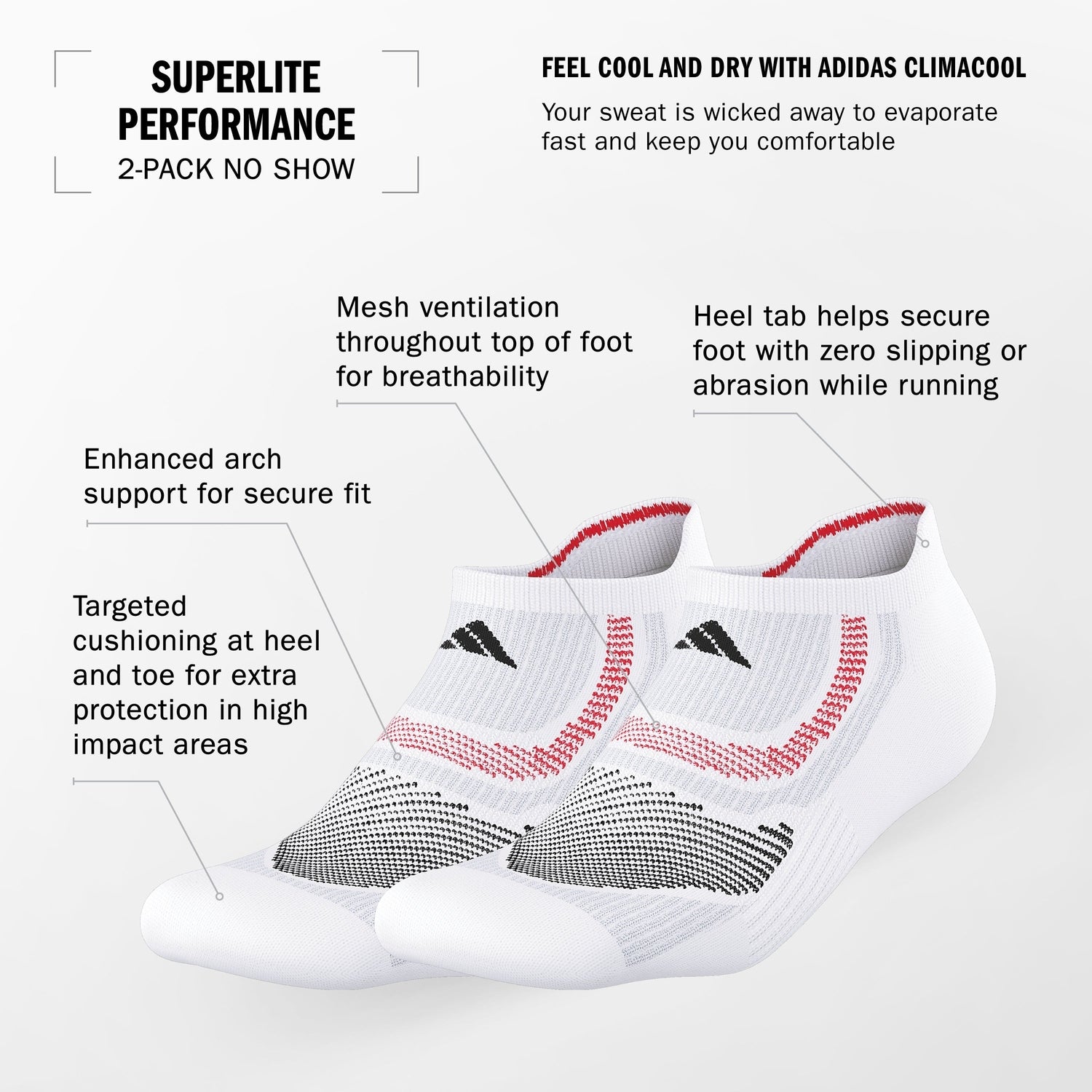 adidas Unisex Superlite Performance No Show Socks (2 Pairs)