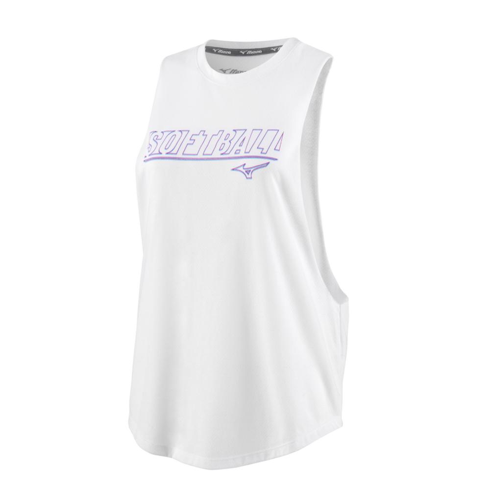 Mizuno Women's Muscle Graphic Tank - White / S is backordered and will ship as soon as it is back in stock.