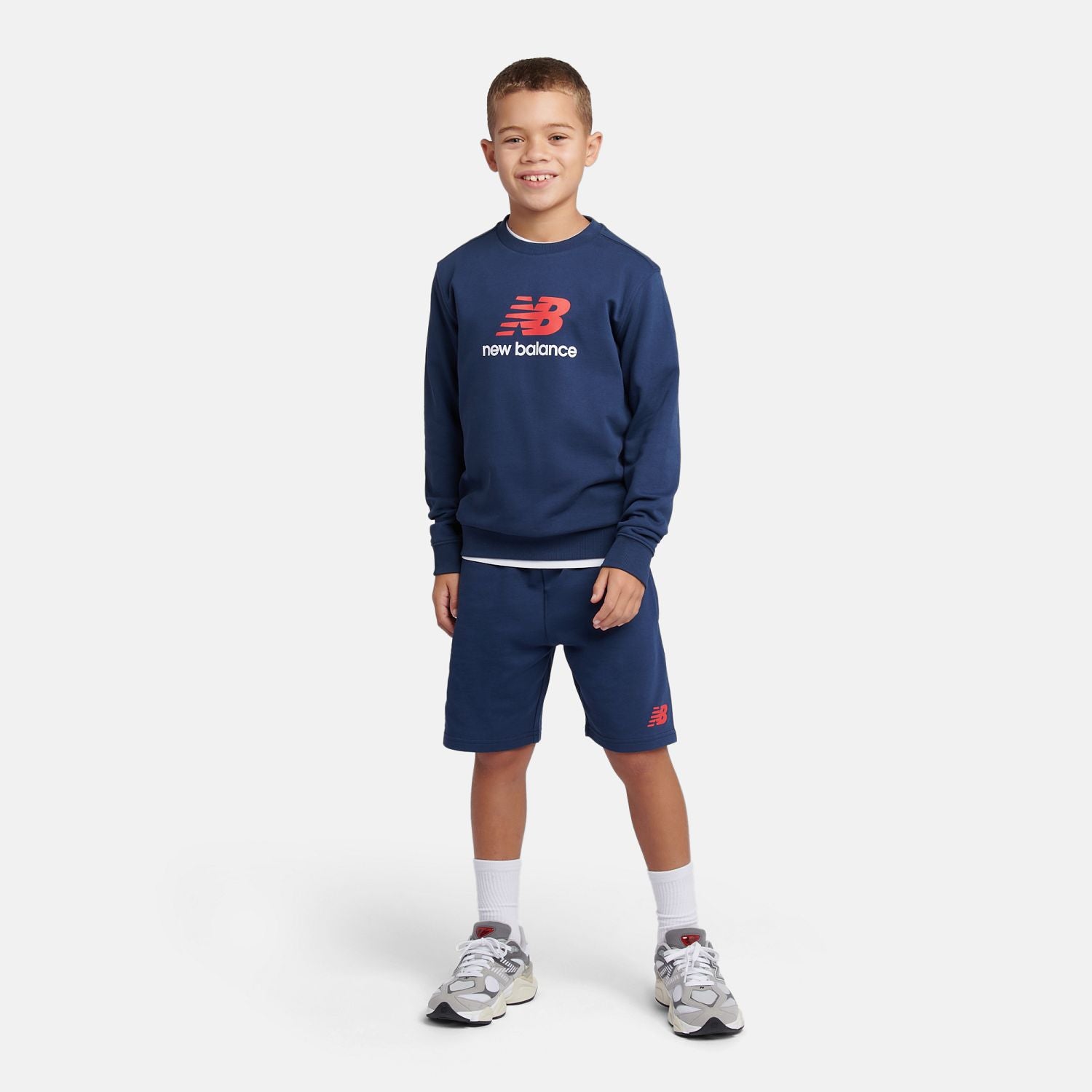 New Balance Boys' Brush Back Stacked Logo Crew