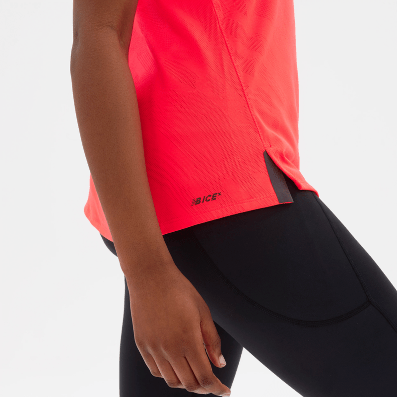 The New Balance Q Speed Jacquard Tank is inspired by urban run crews and unsanctioned races. Featuring NB ICEx technology, the textured jacquard knit fabric provides breathable comfort to help you stay cool while you run. Reflective trims and logos on this sleeveless shirt are designed to catch the light.