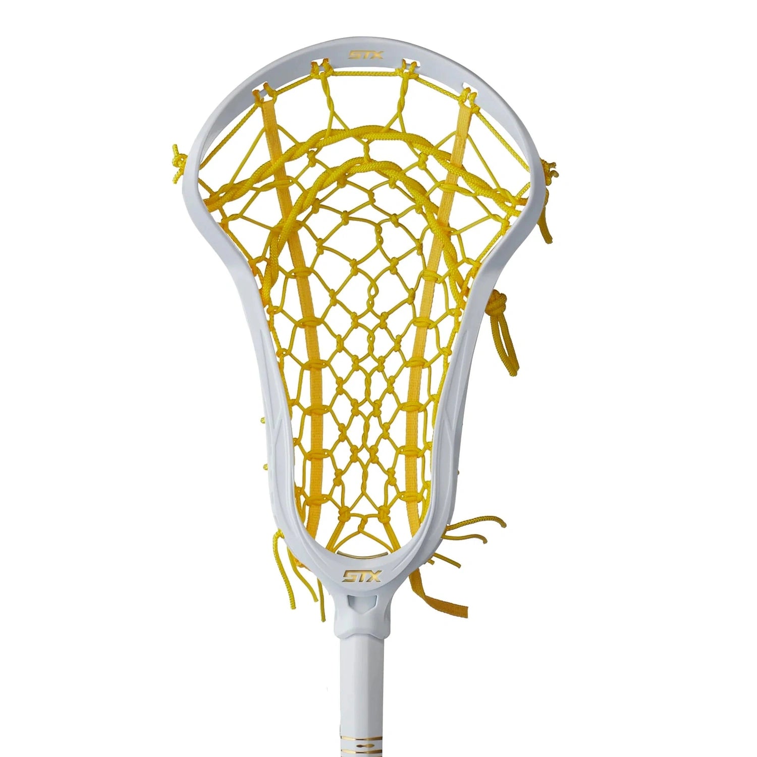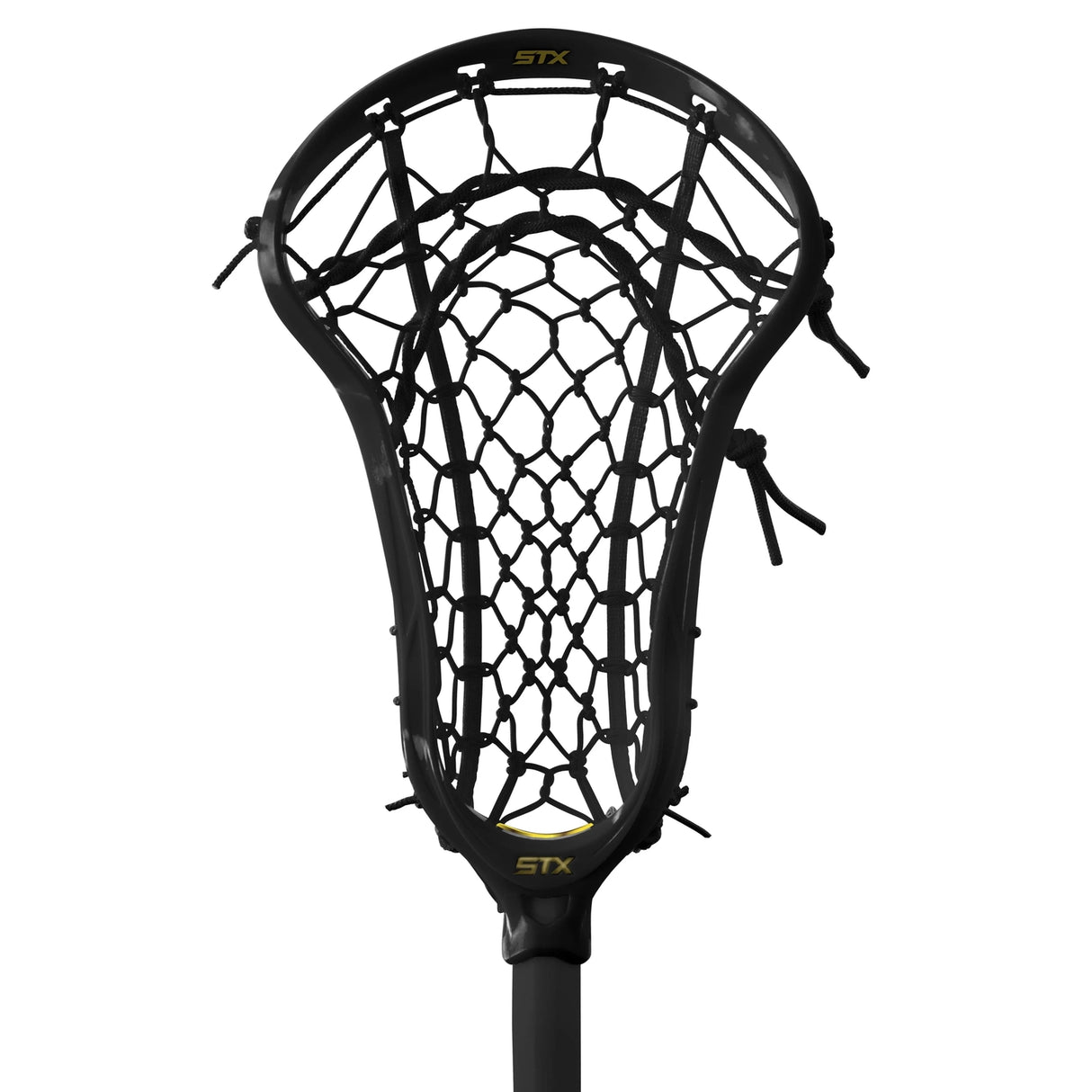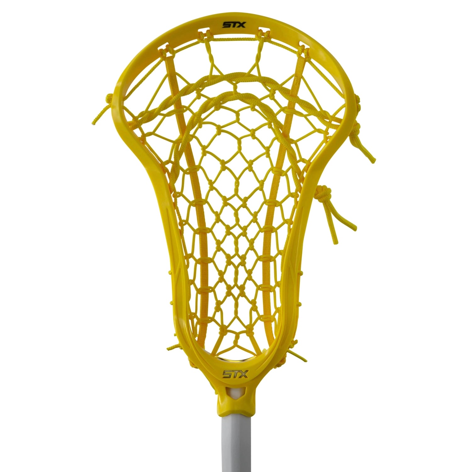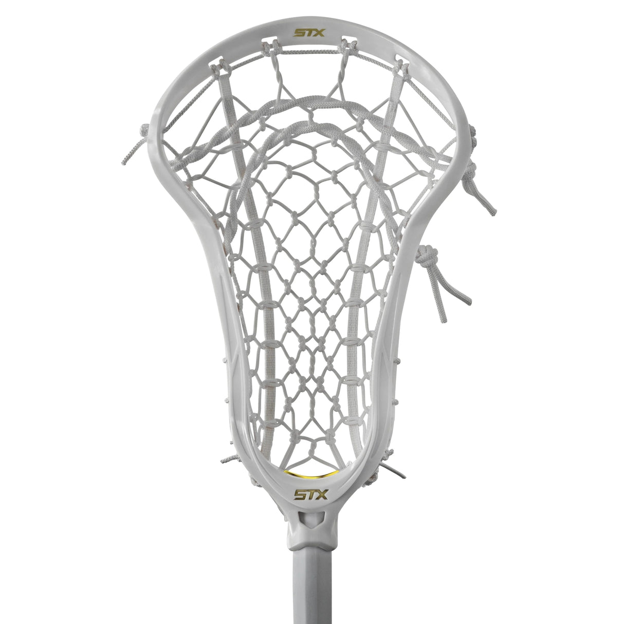This head only is available unstrung or strung with the STX Lock Pocket - a hybrid pocket design made with a unique knotted pattern and thicker strings for increased durability, maximum control and better ball feel.